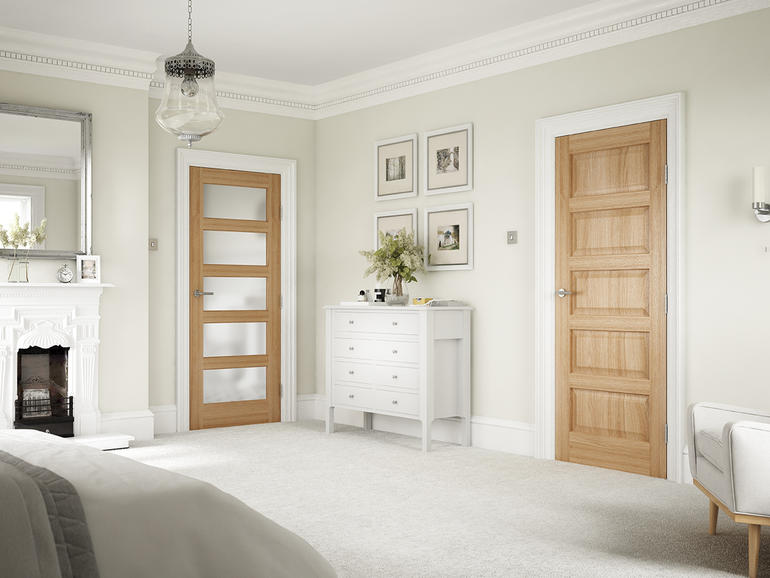 Panelled doors are typically the most common type of internal door with styles varying from traditional 1930s panelled doors to more modern alternatives. Other common styles of internal door include flush doors and glazed doors which can lend themselves to more traditional influences or contemporary styles, depending on the range.