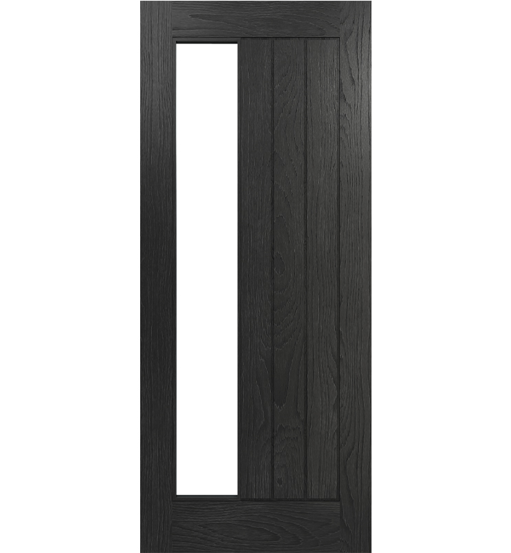 The Pre-Finished Brushed Black Ely Clear Glazed from Deanta Doors is a new take on one of the most popular styles in the UK and is the perfect fit for almost any setting. Vertical grooves add texture and interest to a classic design with a brushed black finish accentuating the variety and beauty of the grain of natural oak. A clean and stylish single glazing aperture to one size builds on this visual interest and allows light to flood between rooms.