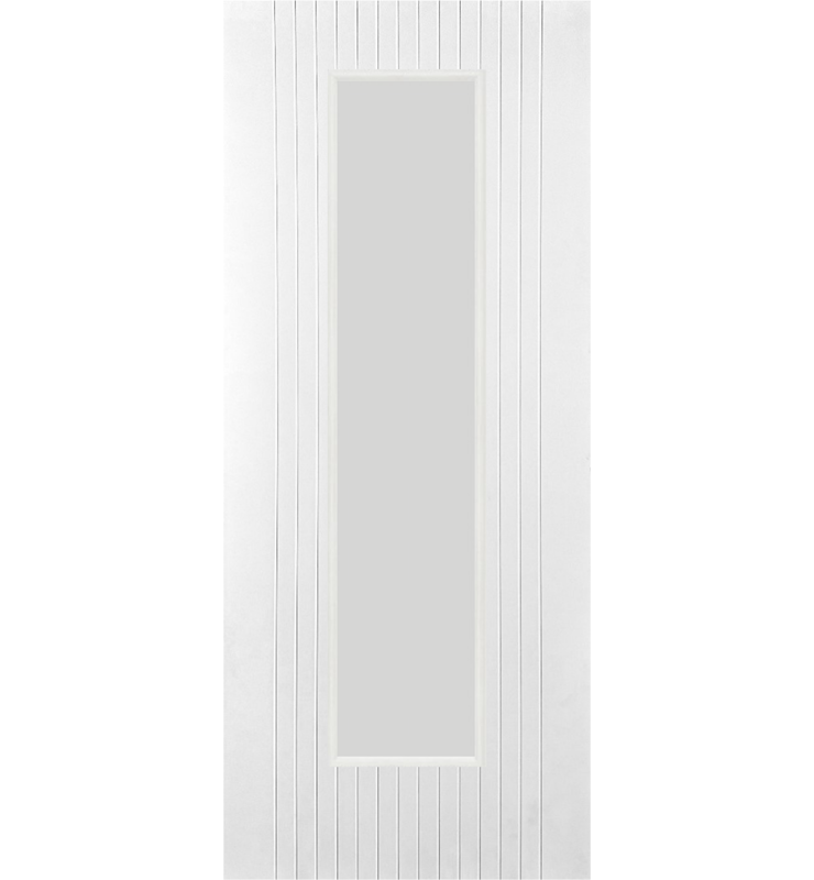 The Internal White Primed Clear Glazed Athena is a sublime designer door boasting sleek, elegant lines, creating an attractive feature that complements rather than detracting from the interior design of your property.