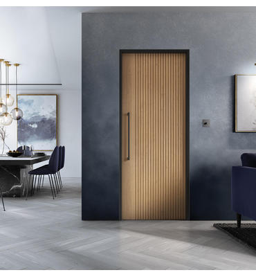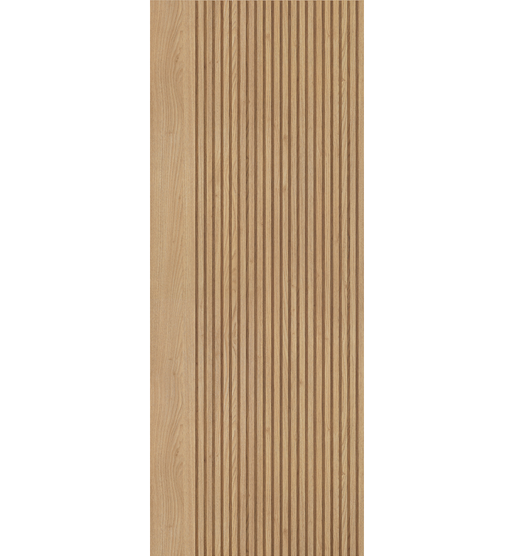 These doors boast a design that is truly one-of-a-kind, blending functionality with exceptional aesthetics. Its striking deep square-cut, vertical grooves create a visually captivating texture, making it the perfect choice for spacious interiors.